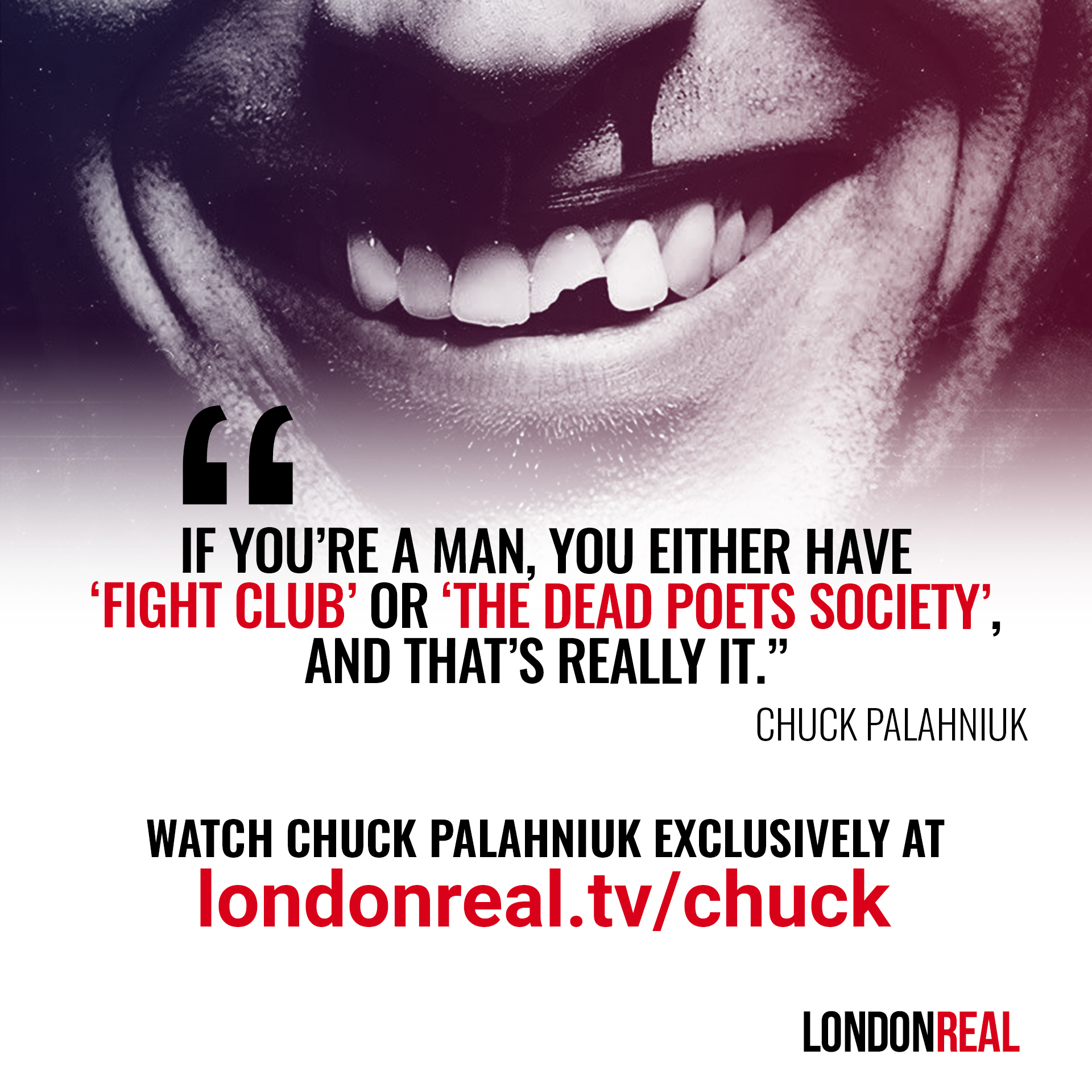 London Real On Twitter If You Re A Man You Either Have Fight Club Or Dead Poets Society And That S Really It Chuckpalahniuk Tune In Live Today At 5pm Uk 12pm Est When